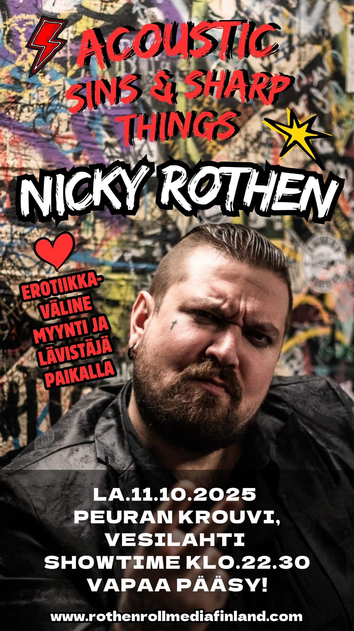 Peuran Krouvi Nurmitie 1, Vesilahti, FinlandTervetuloa viettämään Syysloman kunniaksi tai ihan muuten vaan iltaa huippu seuraan ja kuuntelee huumorilla varustettua showta Nickyn tahtiin . Hän tuskin esittelyjä kaipaa, mutta jos joku ei tunne niin alla […]